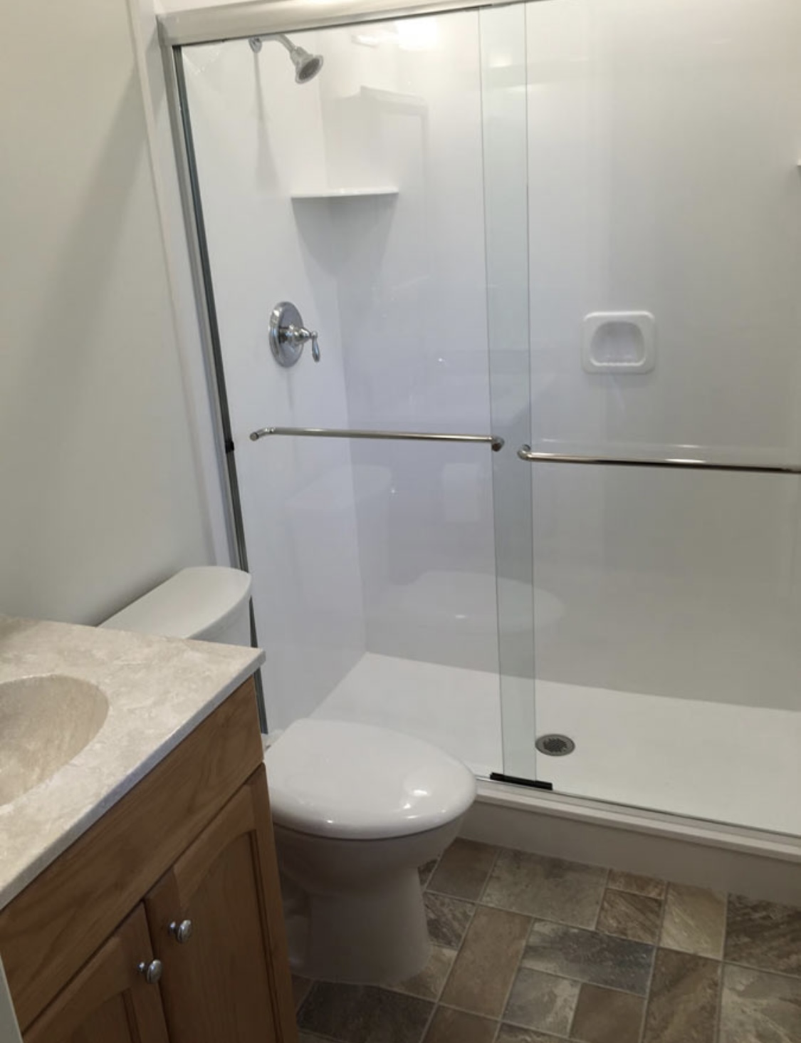 Install a New Luxury Solid Surface Maintenance Free Shower with Sliding Glass Doors